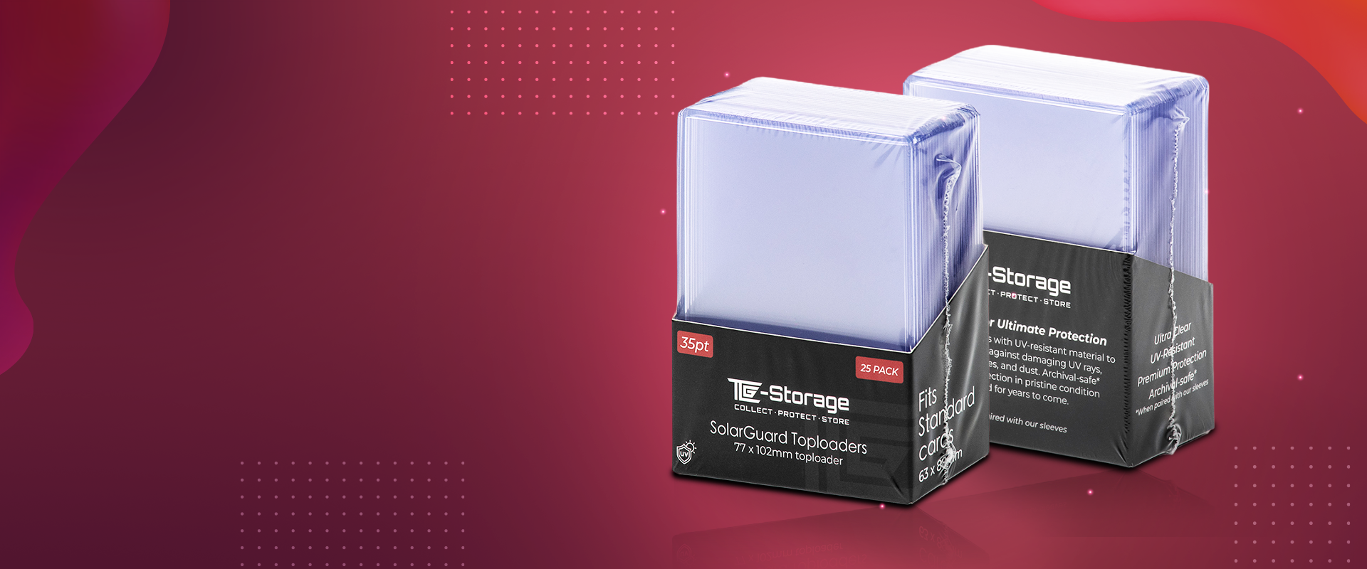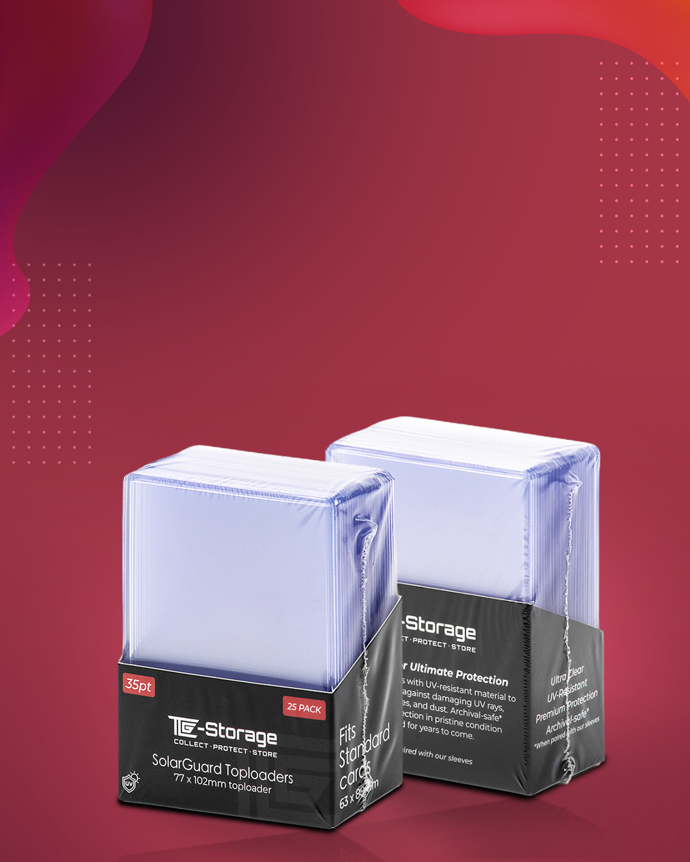 Bescherm je meest waardevolle trading cards met SolarGuard Toploaders, die ultra-stevige, kristalheldere bescherming bieden tegen stof, buigen, slijtage en UV-licht. Combineer met onze archival-safe sleeves voor langdurige bescherming en een perfect zichtbare presentatie van je collectie.